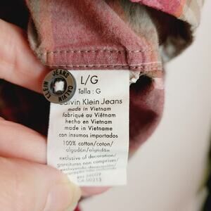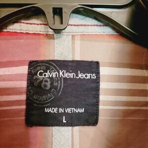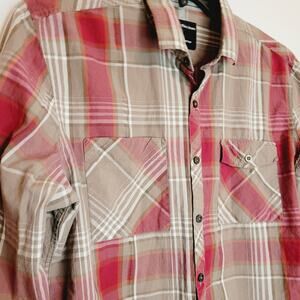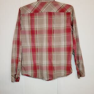 Calvin Klein jeans mens red and tan western plaid long sleeved button up shirt