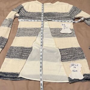 Calvin Klein jeans szS LS grey & white striped sweater sheer back panel EUC