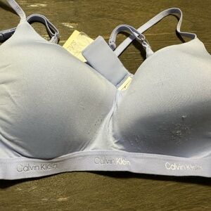 Styled in natural tones with a second-skin feel for optimal comfort and support. This Calvin Klein lightly lined bralette features ultrasoft microfiber with a tonal repeating logo band for a flexible fit. New with tags> Have a defect(see photo)