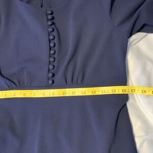 Calvin Klein long ballon sleeve fit & flare scoop neck buttons navy career 10