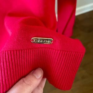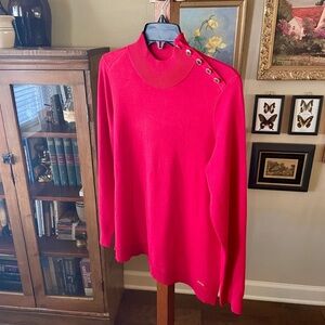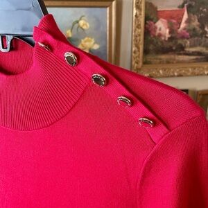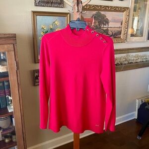 Calvin Klein long sleeve mock neck sweater gold button shoulder detail SZ M red