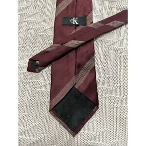 Calvin Klein maroon striped silk tie. Previously loved and in excellent used condition. Non smoking and pet free house.