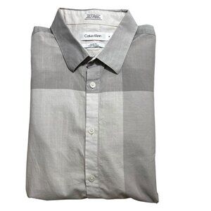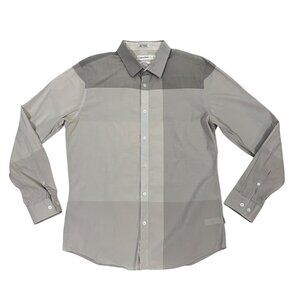 Calvin Klein men's shirt M gray color block long sleeve button down cotton