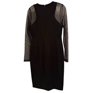 Calvin Klein mesh sleeve black dress- little black dress with mesh long sleeves