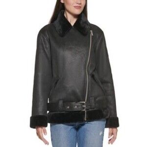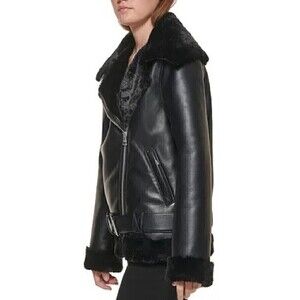 Calvin Klein moto jacket cozy lining and faux fur collar size L, New