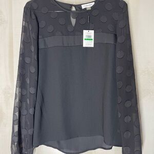 Calvin Klein new black long sleeve see through sleeve, top blouse, size large