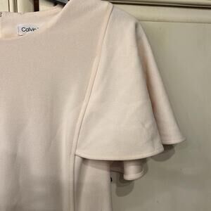 Calvin Klein pale pink dress, sheath style body with small flutter sleeve. Size 4.