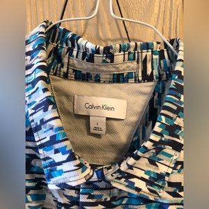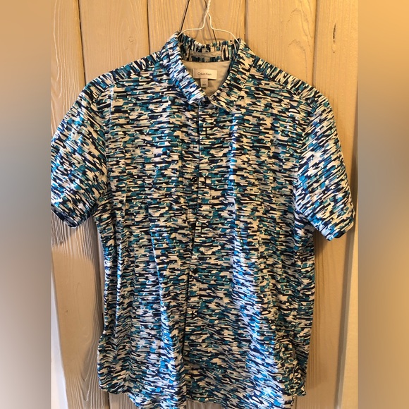 Calvin Klein casual wear button up. Some stretch, with a funky, modern pattern. Men’s size large.