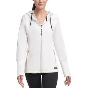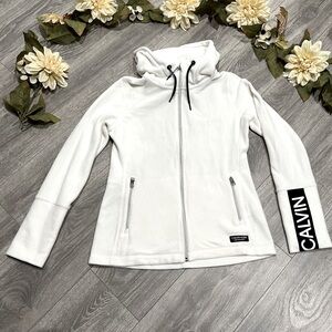 Calvin Klein performance fleece zip front sweatshirt in white and black. Size S