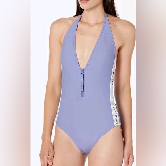 Calvin Klein periwinkle one piece swimsuit with side stripes NWOT size M