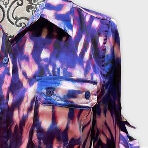 Calvin Klein purple pink and blue tie-dyed button up top