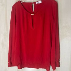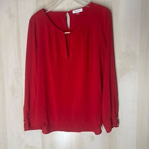 Calvin Klein red long sleeve silk blend blouse, size XL