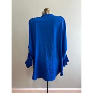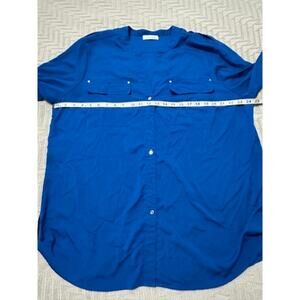 Calvin Klein royal blue blouse, size tag has been removed but it measures like a size 1X, see measurements. Previously loved and in excellent used condition. Non smoking and pet free house.