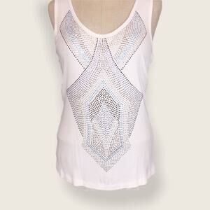 Calvin Klein white scoop neck tank. Full of crystal bling. Bright white.