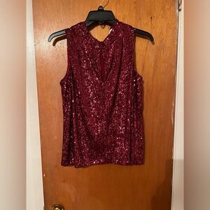 Calvin Klein sequined camisole. Fully lined, this top is top quality and very easy to wear. Has slight stretch but fits true to size. Would be perfect to pair with jeans, slacks, or a skirt for a nice dinner or a night out.