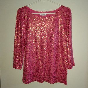 Removed tags and decided pink was not my color, is it yours? Calvin Klein pink tee w/ bronze sequins, 3/4 sleeve, M, new without tags.