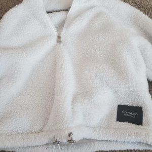 Calvin Klein sherpa cropped hoodie pull over with adjustable straps at the bottom