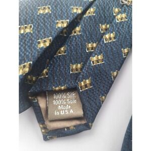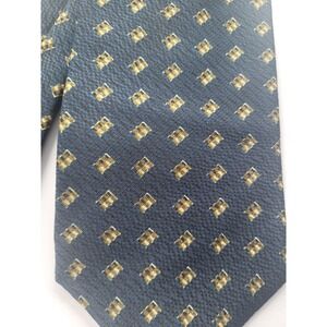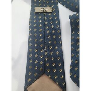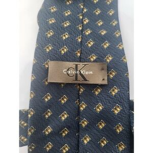 Calvin Klein silk tie navy blue brown gold geometric pattern