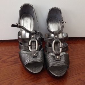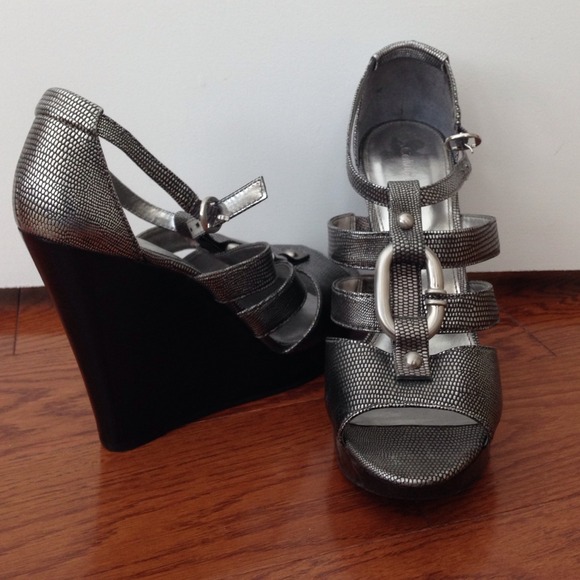 Calvin Klein silver python wedges