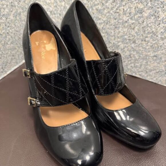 Calvin Klein size 11 Carlena Monk Strap Mary Jane Pumps Shiny Black Patent