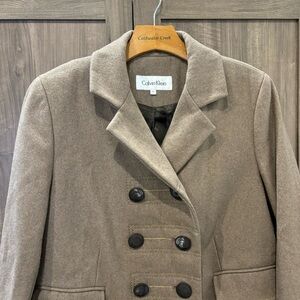 Calvin Klein size 6 Pea Coat Brown Wool Blend Mid Length