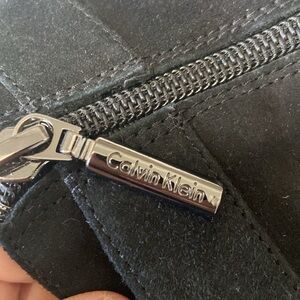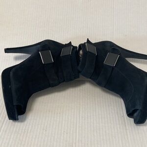 Calvin Klein size 7 black suede booties heels with open toes $100