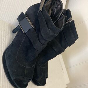 Calvin Klein black suede open toe booties size 7 women’s