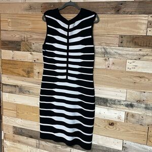Calvin Klein size large black and white stripe form fitted pencil dress