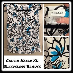 Calvin Klein sleeveless blouse XL. Scoop Neckline with small flattering gathers. Button at top back neck.