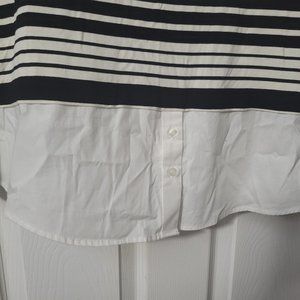 L/S Calvin Klein black and white rayon blend striped tunic with faux cotton 'blouse' hem.