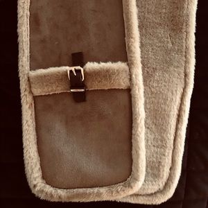 Calvin Klein suede w/ pockets 70” faux fur scarf