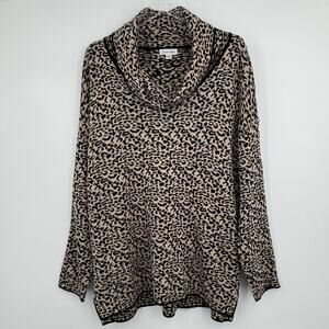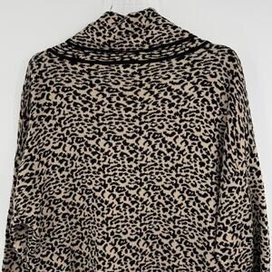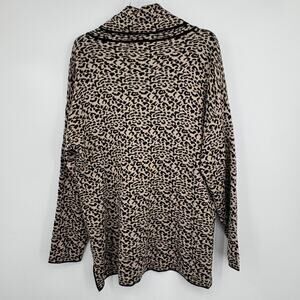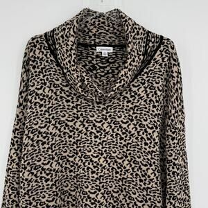 Calvin Klein sweater large cowl neck pullover leopard print tunic black tan