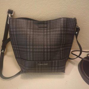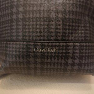 This Calvin Klein tote bag with a magnetic closure can be used as a pocket book or a tote bag. It is gray and black and silver brand new. Never used non-smoker and clean approximately 11x9 in size.