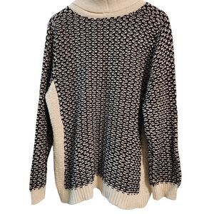 Beautiful soft creamy white and black sweater with knit design. cowl turtleneck.