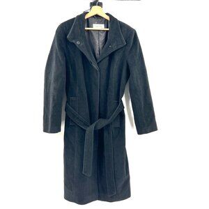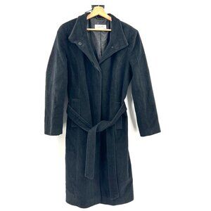 Calvin Klein velvety angora wool trench coat wrap jacket belted midi black 10