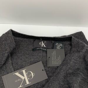 Calvin Klein v-neck wool sweater charcoal gray heather Merino men new X-Large XL