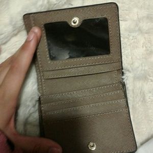 Neutral brown color with gold details. Small wallet, never used. Received as gift