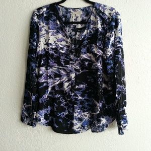 Excellent condition CK button down blouse with inverted pleat going down back. Looks great beneath a blazer or worn alone with a skirt or slacks.