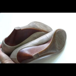 Leather upper. Light taupe color