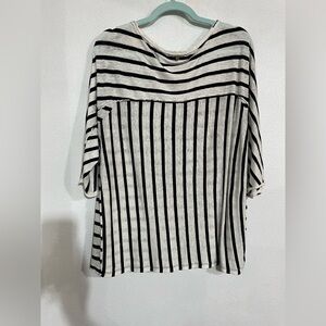 Calvin Klein, white black stripe 100% linen T-shirt L NWOT