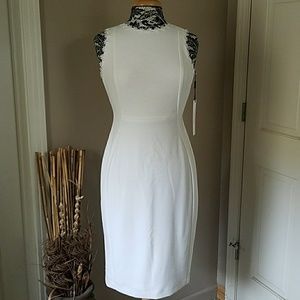Gorgeous white form fitting dress with beautiful little daisies at neckline and sleeve openings. This dress will not last long!