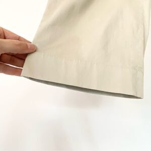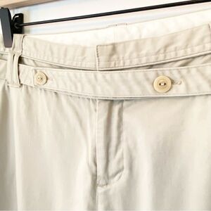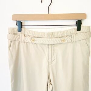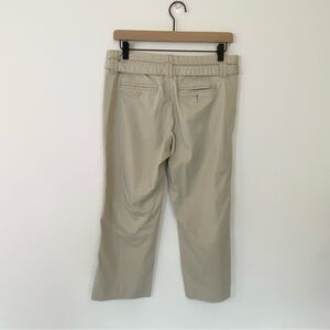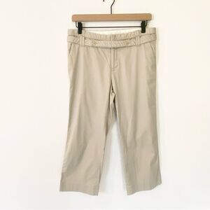 Calvin Klein wide leg khaki capri pant size 6. Button belt tie at waste back pockets. Missing one pocket button see last picture.