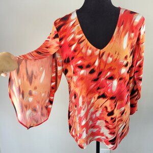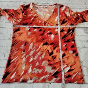 Calvin Klein woman's orange printed elbow flutter sleeves blouse size M