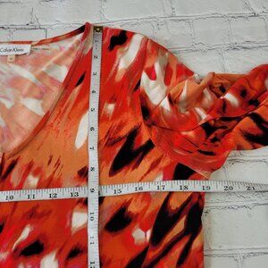 Gently used Calvin Klein woman's orange printed elbow flutter sleeves blouse size M
