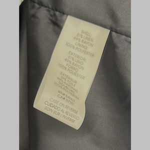 The Calvin Klein women's black blazer has small shoulder pads in the shoulders of the jacket. The women's blazer is open front as seen in image 8. One of the original tags on the Klein blazer is tore off, as seen in image 5.