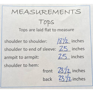 Clothing actual size can be different than the tag size because of washing or style/cut. Please see the measurements in the photos and compare to an item that fits you. All items are laid flat for measurements.
