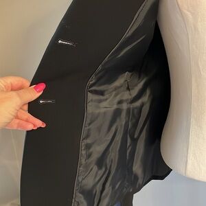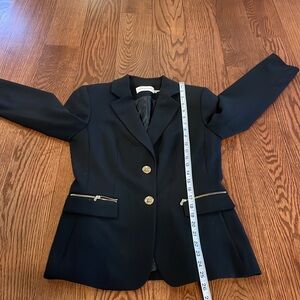 Calvin Klein women’s black blazer with 2 gold button closure gold zip pockets 4