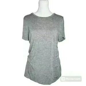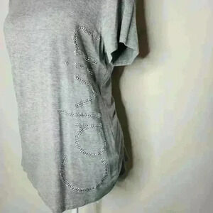 Calvin Klein women's gray short sleeve top size medium. Side has bedazzles reading calvin klein on the side. In excellent pre-owned condition. No flaws. Measurements are approximate and taken flat.