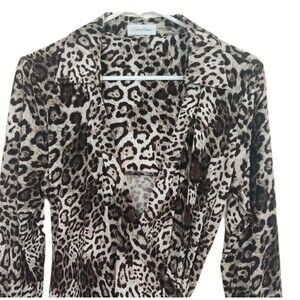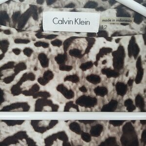 Calvin Klein women's midi wrap dress, size 12, cheetah print, belt, long sleeves