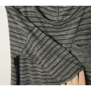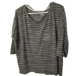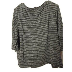 Style: black and gray striped 3/4 sleeves with boat neck tee. has a small breast pocket. 58% Cotton 38% Modal 4% Spandex